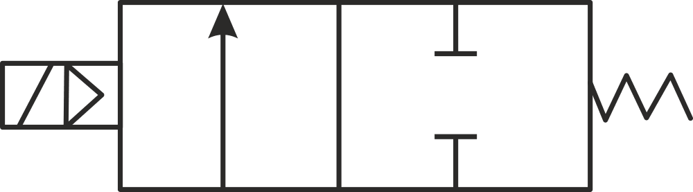 В исходном положении у распределителя РЭПВ-221 порт питания и рабочий порт закрыты, давление никуда не подается и не сбрасывается. При подаче питания на катушку порт питания соединяется с рабочим портом. При снятии питания золотник возвращается в исходное положение.