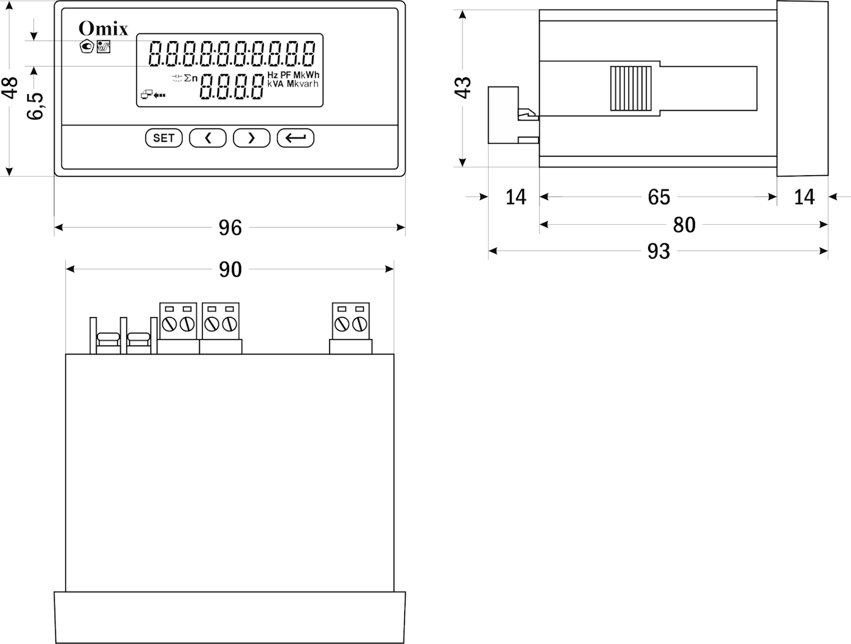 Мультиметр однофазный щитовой Omix P94-MY-1-RS485 предназначен для измерения напряжения, силы тока, частоты тока, активной мощности, реактивной мощности, коэффициента мощности, активной энергии и реактивной энергии