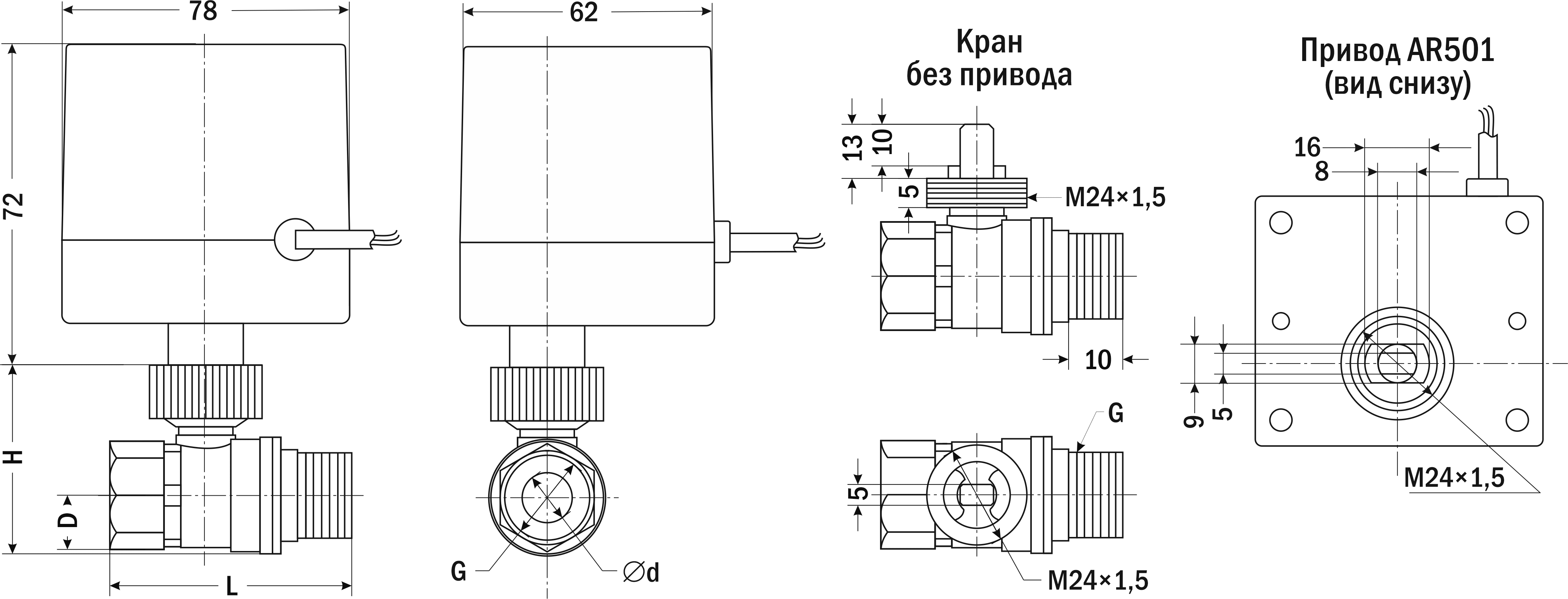 | Присоединение привода к крану | М24×1,5 |