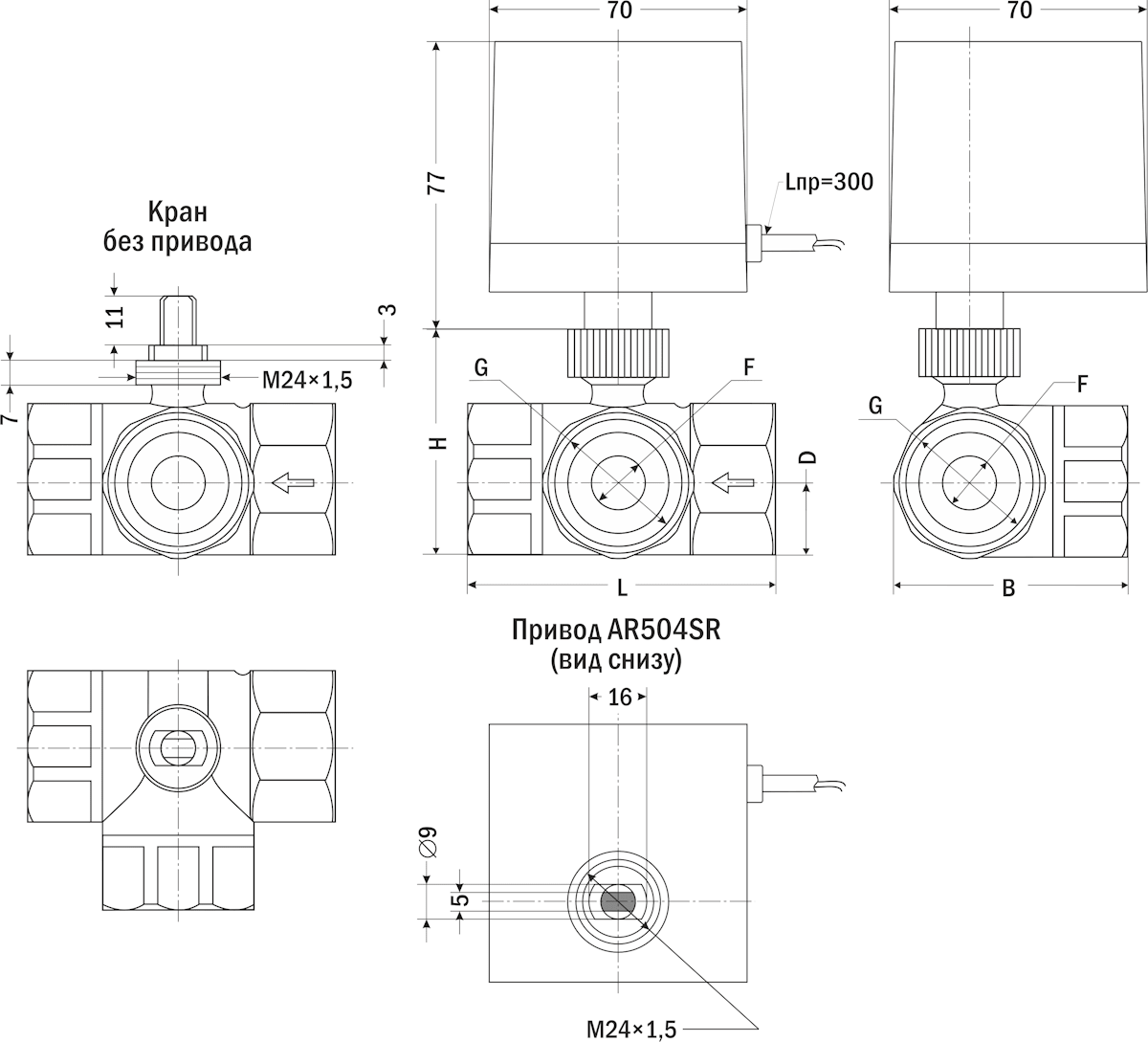 | Присоединение привода к крану | М24×1,5 | ||
