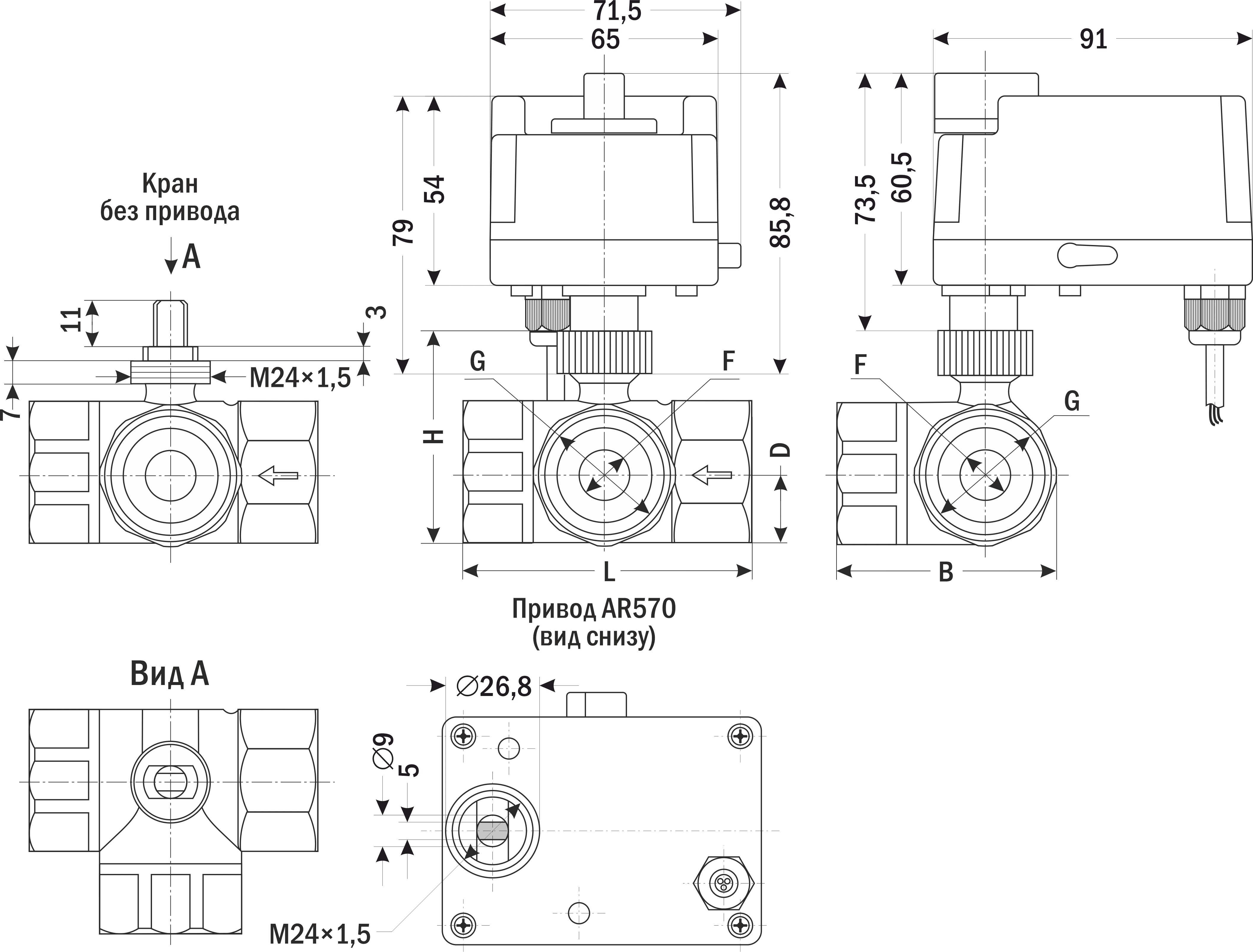 | Присоединение привода к крану | М24×1,5 |