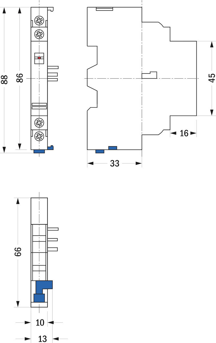 Дополнительный контакт предназначен для коммутации и сигнализации цепей управления переменного и постоянного тока при изменении состояния автомата.